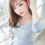 この画像には、明るい茶色の髪を持つ若い女性が写っています。彼女は豹柄のドレスを着ており、ネックレスを身につけています。ドレスはハートカットのネックラインを持ち、彼女はカメラに直接見つめ、やや上方からの視点で撮影されています。バックグラウンドは暖色系でぼやけていて、女性は写真の中央に位置しています。全体的な雰囲気は柔らかく、ポートレートは高い解像度で撮影されており、細部まで鮮明に見えます。